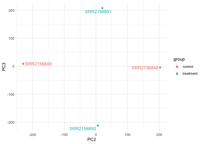 ggplot(pc.df, aes(x = PC2, y = PC3, color = group, label = sample)) +